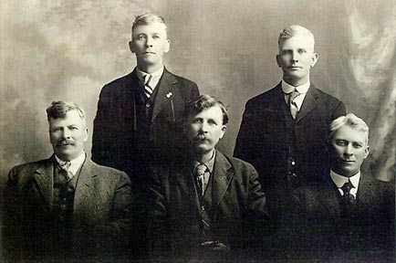 Sons of Laurence Dempsey and Belinda O'Leary: Front Row Left to Right - Francis Xavier, Thomas, Alphonsus; Back Row Left to Right - Mike, Aloyisius (sic) (Name of son Patrick appears on the 1870 census of Leavenworth, Kansas, at age 15, but he was not with the family in 1880.
